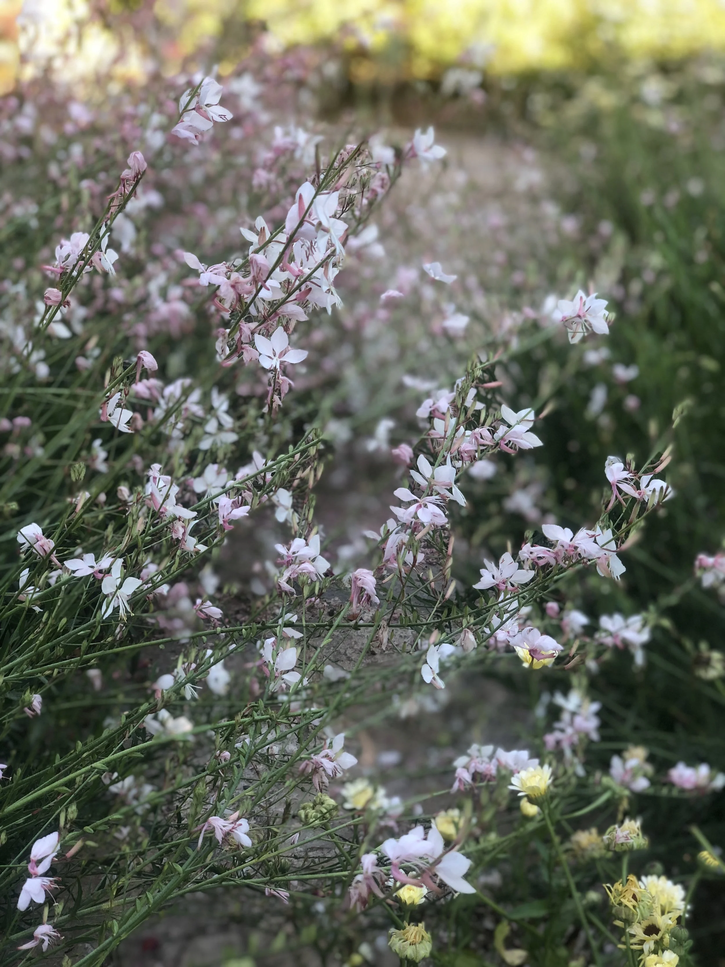 Perennials they can find in my garden are Lavendar, Catmint, Gaura, Verbascum, Erigeron and Yarrow. Gaura in particular is a favorite both of the pollinators and mine. It dances in the breeze with the bees visiting the blossoms as quickly as they can. I find it mesmerizing.